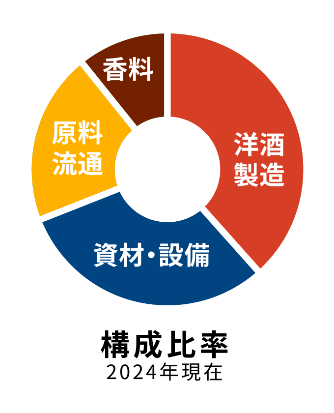 - 洋酒の原材料を提供する企業、洋酒の流通を担う企業が参加しています。